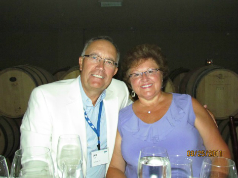 Well, we sold the Goldwing and now just travel all over by car or plane. No more Steel business but he keeps very busy. We are going to Germany for the Rhine river cruise with Viking this month. We do go to Dixon quite often as Art's dad is still there, but see very few friends. Hoping to see you all next year for the 50th!! Our grandsons are 12 and 14 now and can beat us in golf- hard to believe time flies so fast.